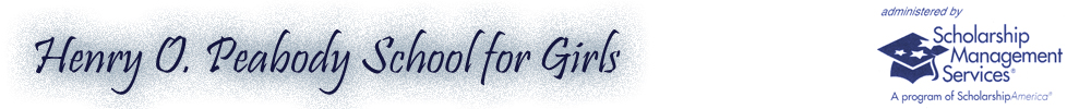 Established by the Henry O. Peabody School for Girls, the program operates under the will of Henry O. Peabody. Since the program's inception in 1991, nearly three million dollars in scholarships have been awarded. It is independently managed by Scholarship Management Services®, a division of Scholarship America®. Scholarship Management Services is the nation's largest designer and manager of scholarship and tuition reimbursement programs for corporations, foundations association and individuals. Recipients are selected without regard to race, color, creed, religion, sexual orientation, disability or national origin. Get Started HERE: |